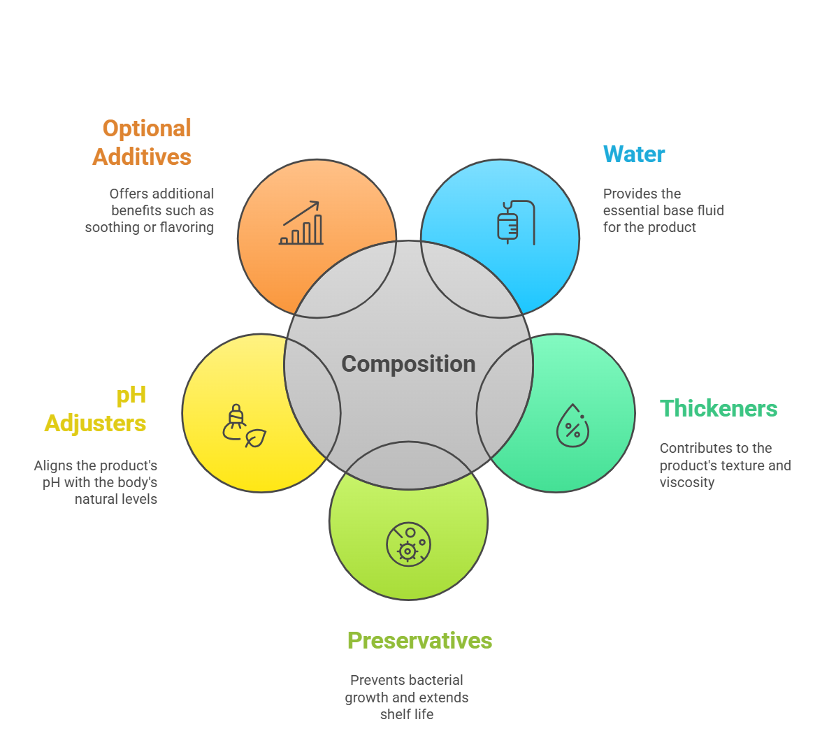 pH Adjusters - Citric acid or sodium hydroxide to match body’s natural pH (Normal Veginal pH - 3.5 - 4.5)